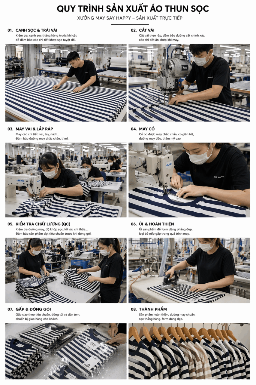 Trong hơn 14 năm sản xuất, tụi mình nhận ra rằng áo sọc là một trong những dòng dễ phát sinh lỗi nếu không kiểm soát kỹ.